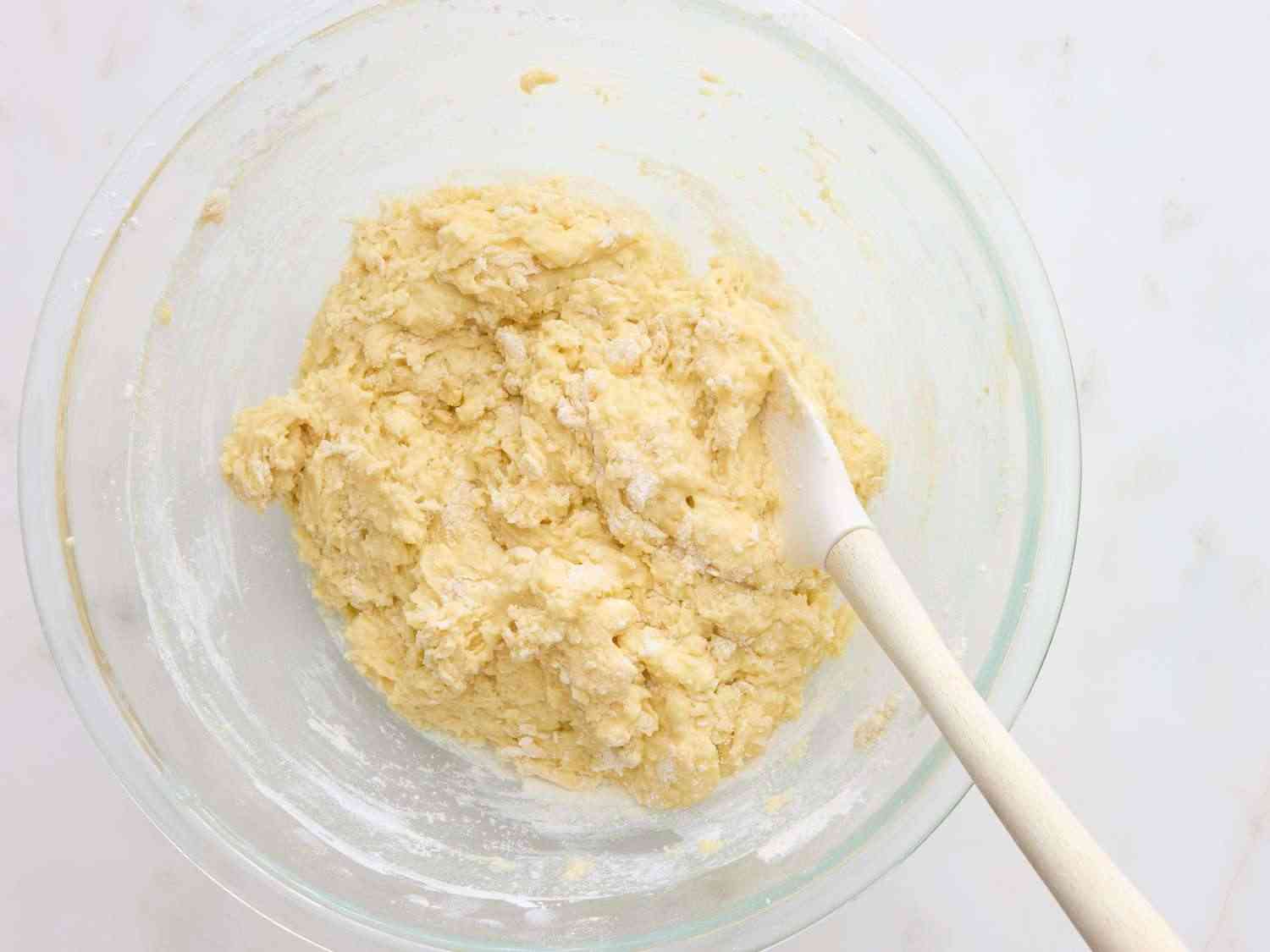 - Step 5:Mix sugar and butter together in a large bowl with a spatula until well blended. Whisk in eggs, one at a time, until thoroughly incorporated. Whisk in sour cream and vanilla. Gradually whisk in flour mixture until flour is just incorporated; do not overmix. Dotdash Meredith Food Studios